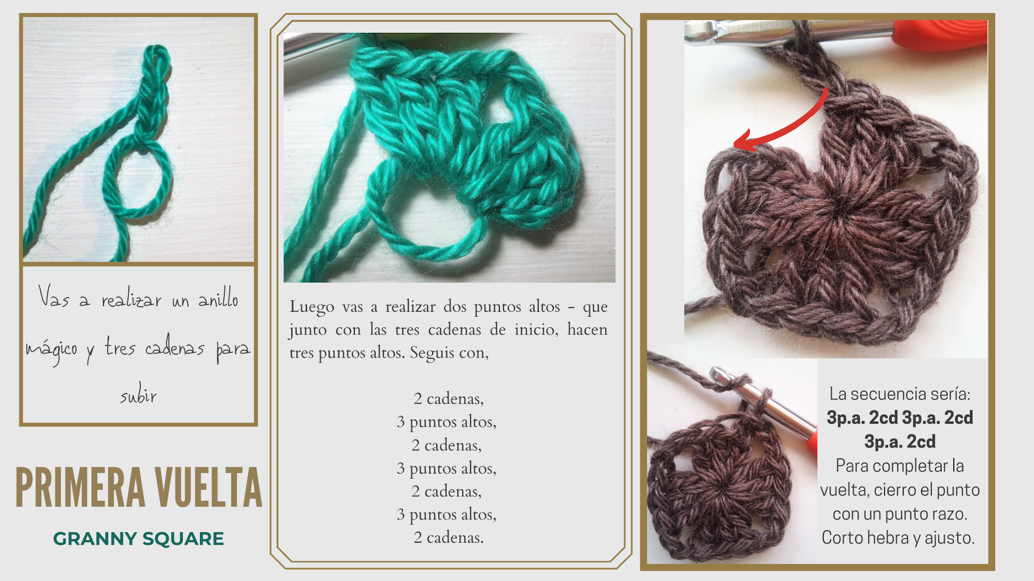 CROCHET GRANNY SQUARE - MUY FÁCIL. Hola a todos! Esta es una nueva entrega de nuestros Paso a Paso y especialmente para aquellos que están dando sus Primeros Pasos en este maravilloso mundo de Crochet. Hoy les tengo una propuesta muy divertida; vamos a aprender a realizar unos divinos grannys que son muy fáciles de hacer.