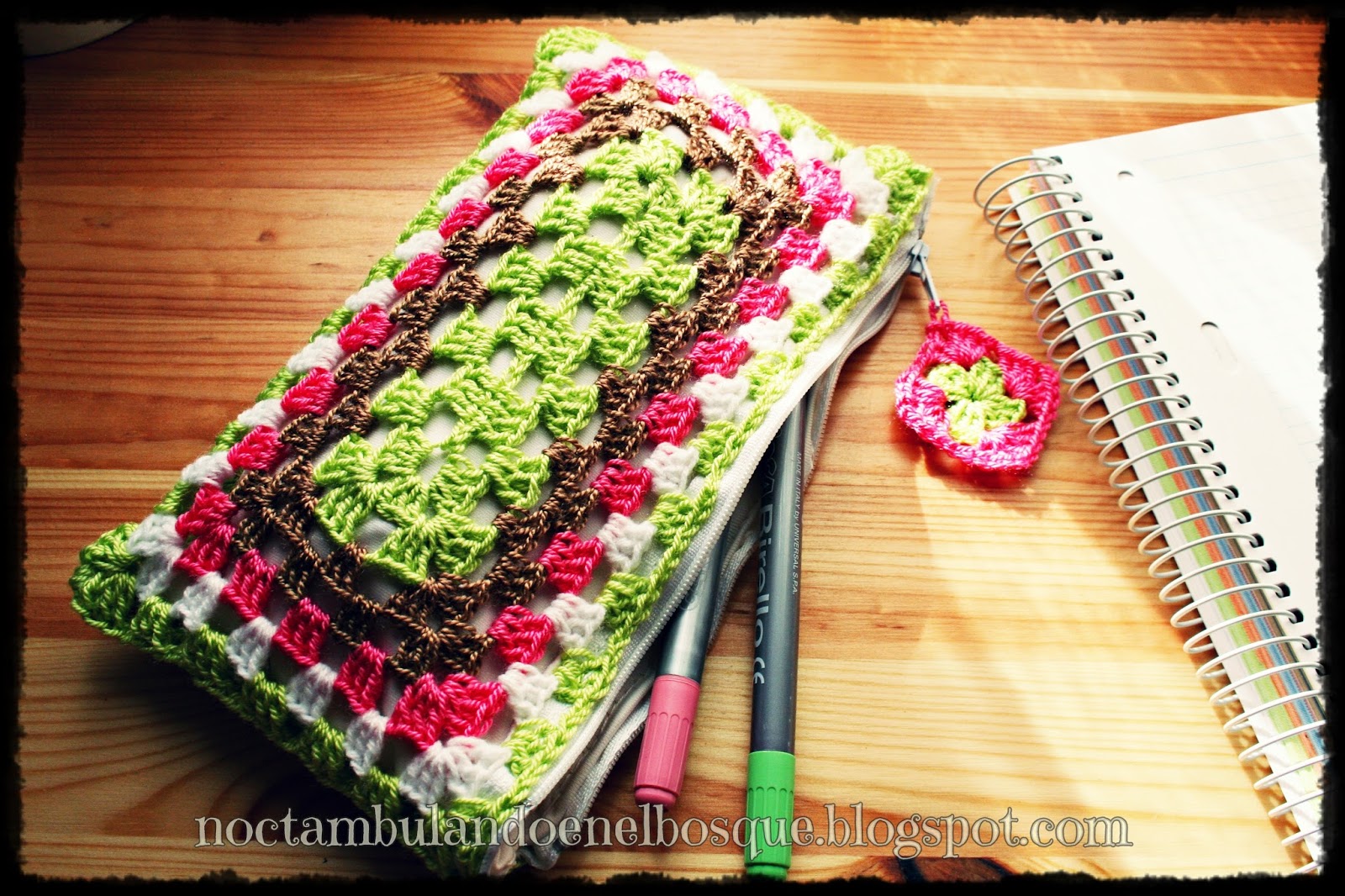 Estuche granny square rectangular Noctambulando en el Bosque