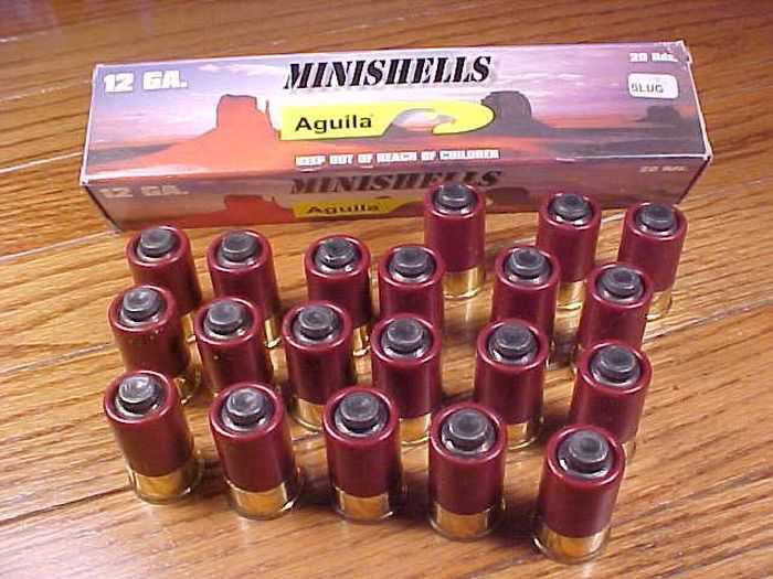 The Minishell 12 Gauge Shotshells from Aguila Ammunition are designed to reduce recoil and noise, making them an excellent alternative for beginning shooters. Shell length is 1-3/4 inch. Features and Advantages of 12 gauge mini slugs. 7/8-ounce shot (7.5, 00 buckshot); 5/8-ounce shot (7.5, 00 buckshot) (sabot) a box of 20 rounds (00 buckshot.