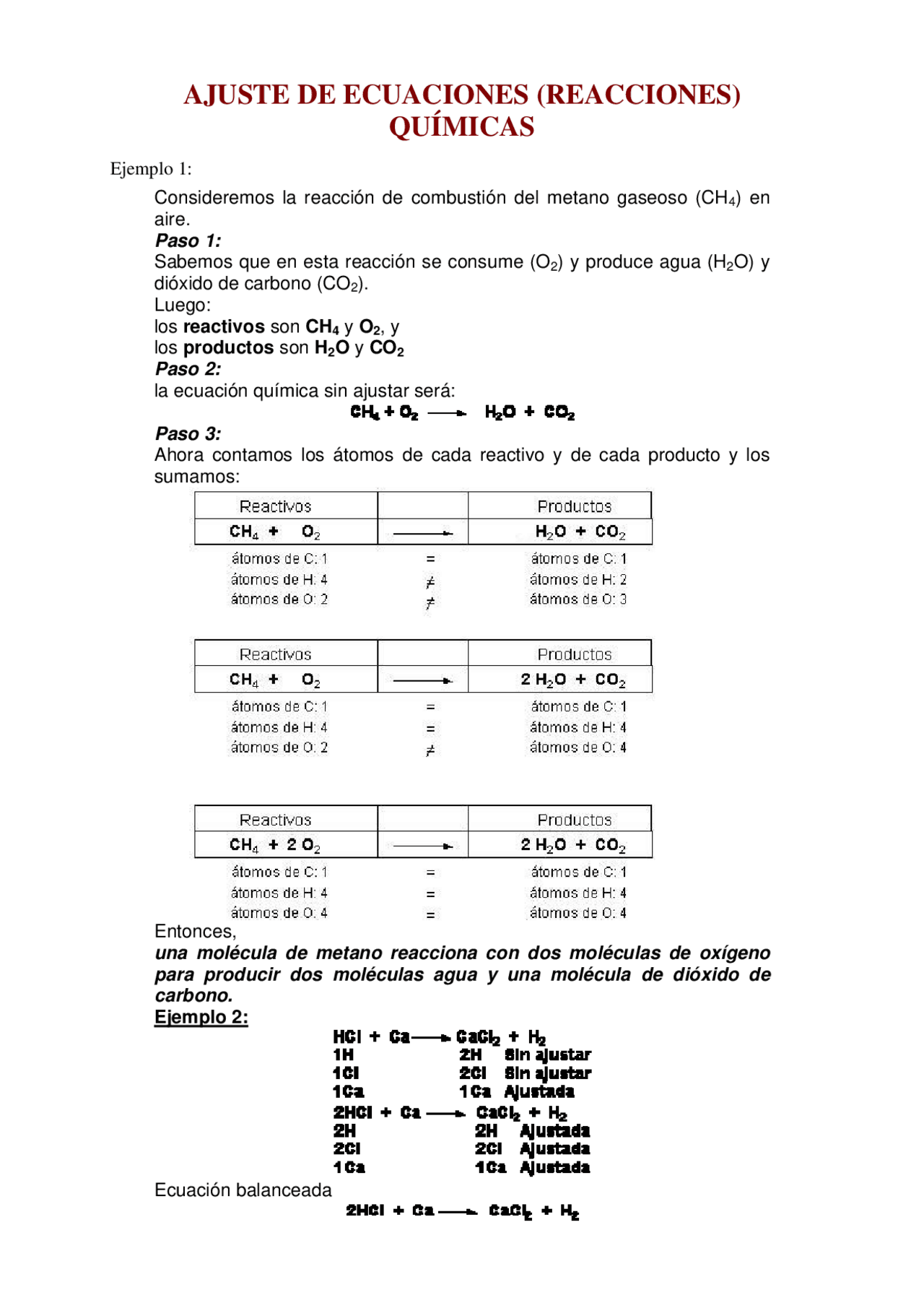 Ajuste de ecuaciones (reacciones) químicas. Diapositivas de Química Docsity