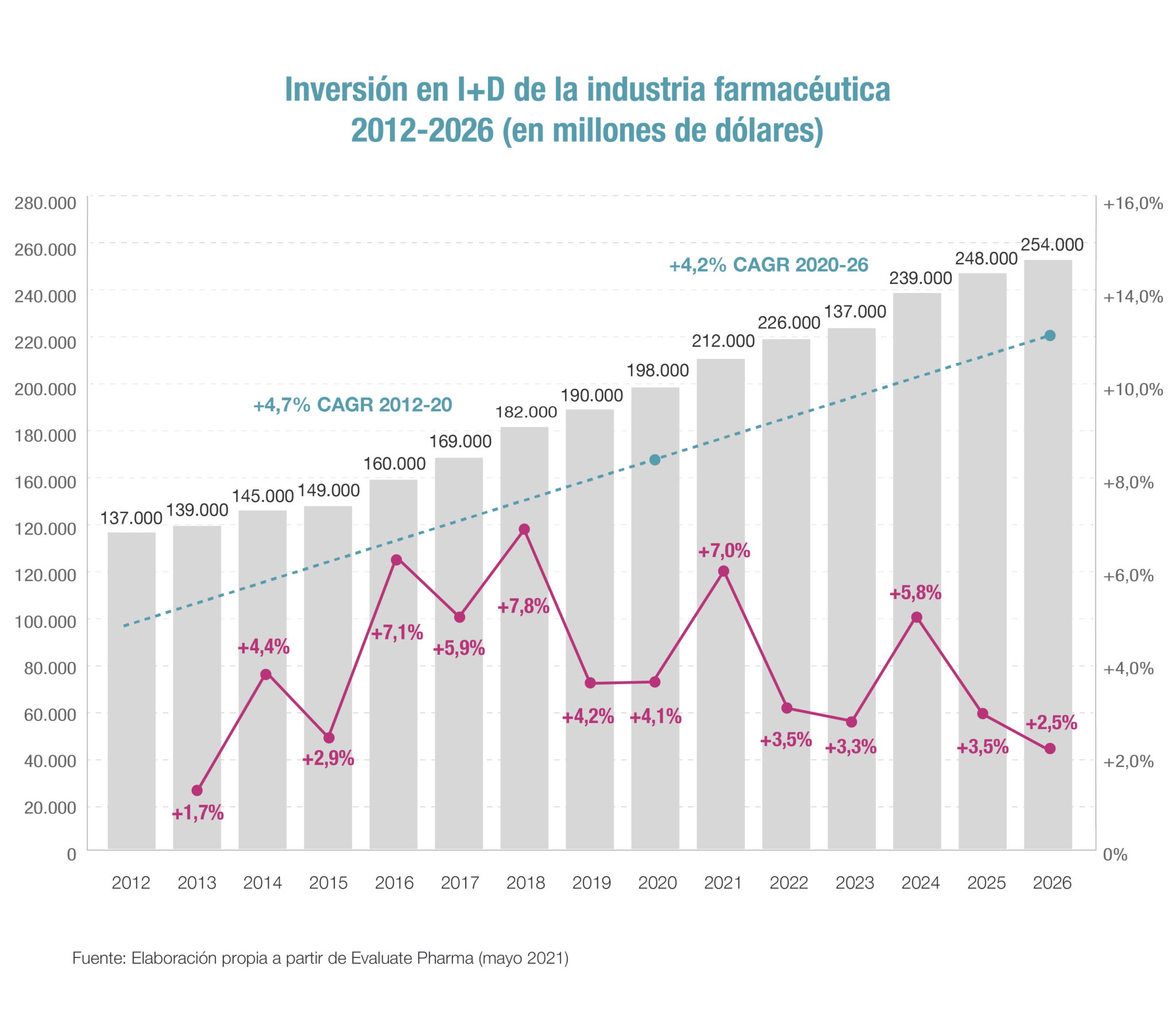 La industria farmacéutica lidera la inversión mundial en I+D ya supera los 200.000 millones