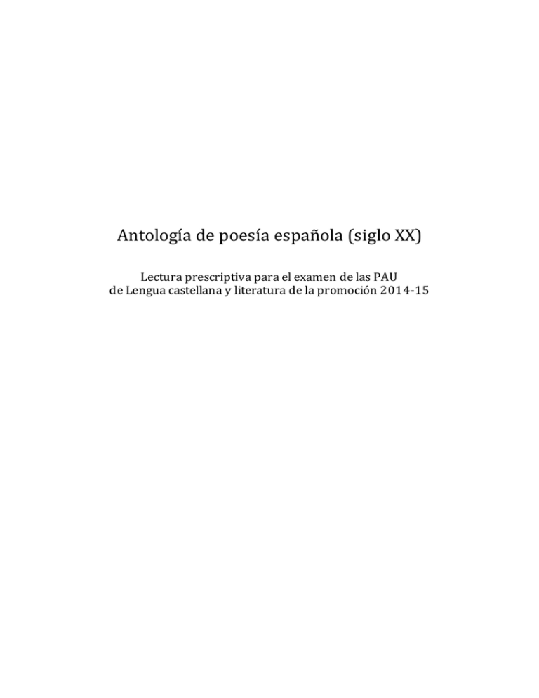 Antología de poesía española (siglo XX) Lectura prescriptiva para el examen de las PAU de Lengua castellana y literatura de la promoción 2014-15