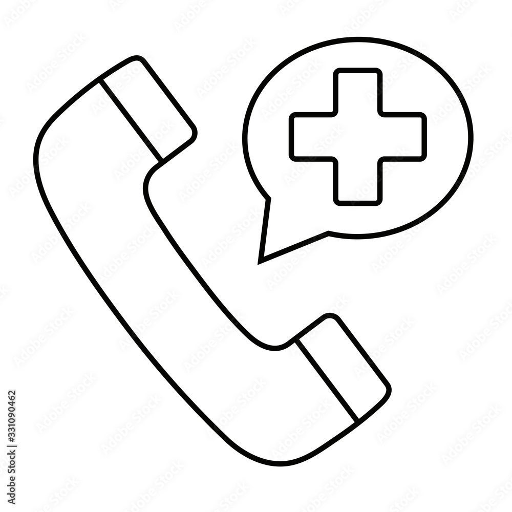 Emergency number phone call. Vector illustration in black and white. Icon for websites or mobile