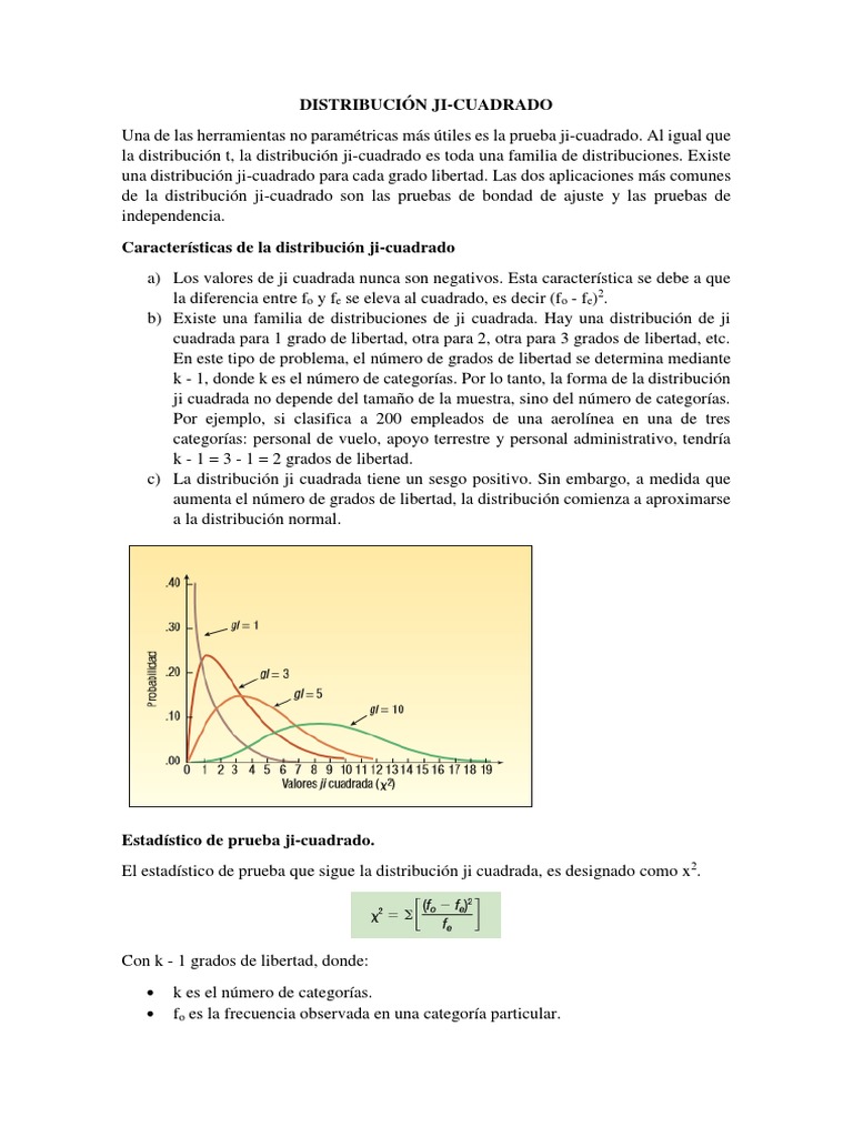 Distribución chi-cuadrado. La prueba chi-cuadrado utiliza una aproximación a la distribución chi cuadrado para evaluar la probabilidad de una discrepancia igual o mayor que la que exista entre los datos y las frecuencias esperadas según la hipótesis nula. La exactitud de dicha evaluación dependerá de que los valores esperados no sean muy.