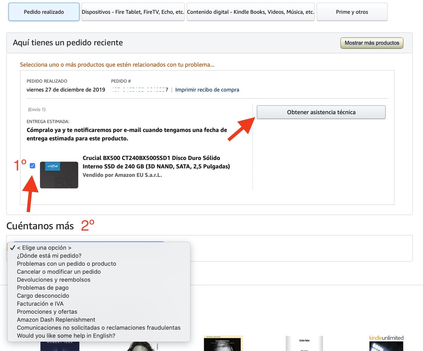 Ayuda - Servicio de atención al cliente de Amazon. ¿Has recibido algún mensaje de texto, correo electrónico, llamada telefónica o carta inesperada que parezca provenir de Amazon? Mantente alerta. No abras ningún enlace en la comunicación e infórmalo lo antes posible aquí. Amazon no te llamará, enviará mensajes de texto ni correos.
