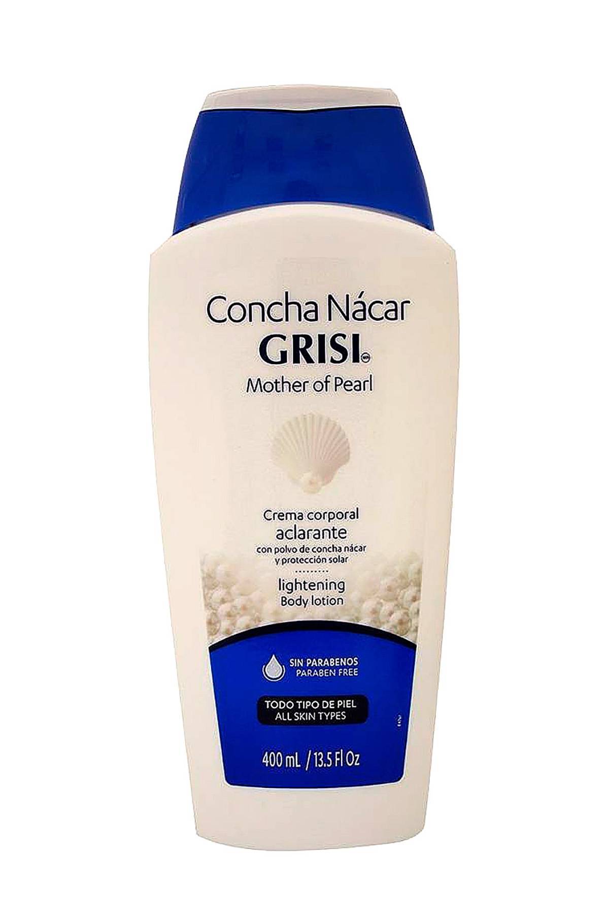 Descripción del producto. Crema corporal Concha Nácar Grisi ayuda a aclarar la piel y desvanecer manchas, cicatrices e imperfecciones. Gracias a que contiene filtro de protección solar, previene la aparición de futuras manchas y el oscurecimiento de la piel. El fabricante nos proporciona este producto con empaques diferentes.