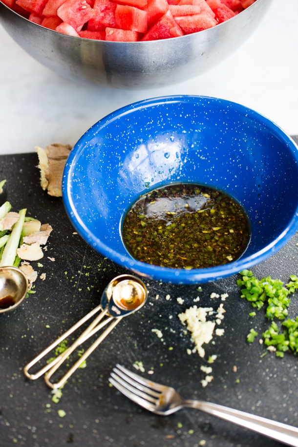 Para macerar el salmón del poké bowl: 50 gr. de salsa de soja. 3 cucharadas de aceite de sésamo. 3 cucharadas de vinagre de arroz. Ahora que ya tienes preparados todos los ingredientes del poke de salmón y mango, vamos a explicarte cómo preparar poke casero de salmón.