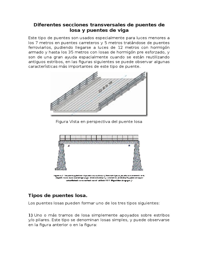 Diferentes Secciones Transversales de Puentes de Losa y Puentes de Viga Puente Acero