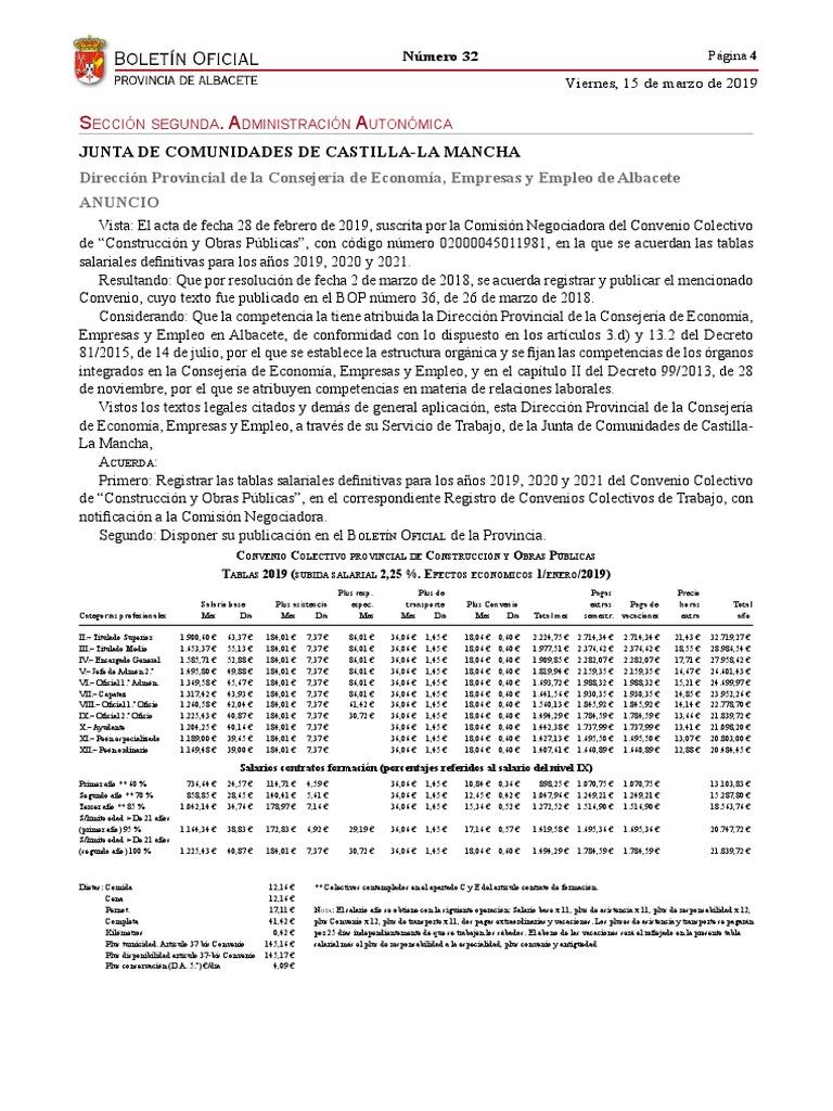 Tablas Salariales Convenio Colectivo Construccion de Albacete para Los