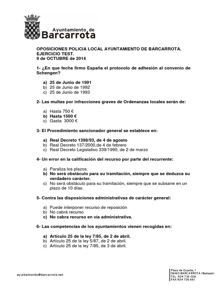 NUEVO TEST OFICIAL DE LAS OPOSICIONES DE LA POLICIA LOCAL DE